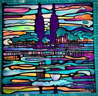 San Antonio, TX. Riverwalk. 8"x8".